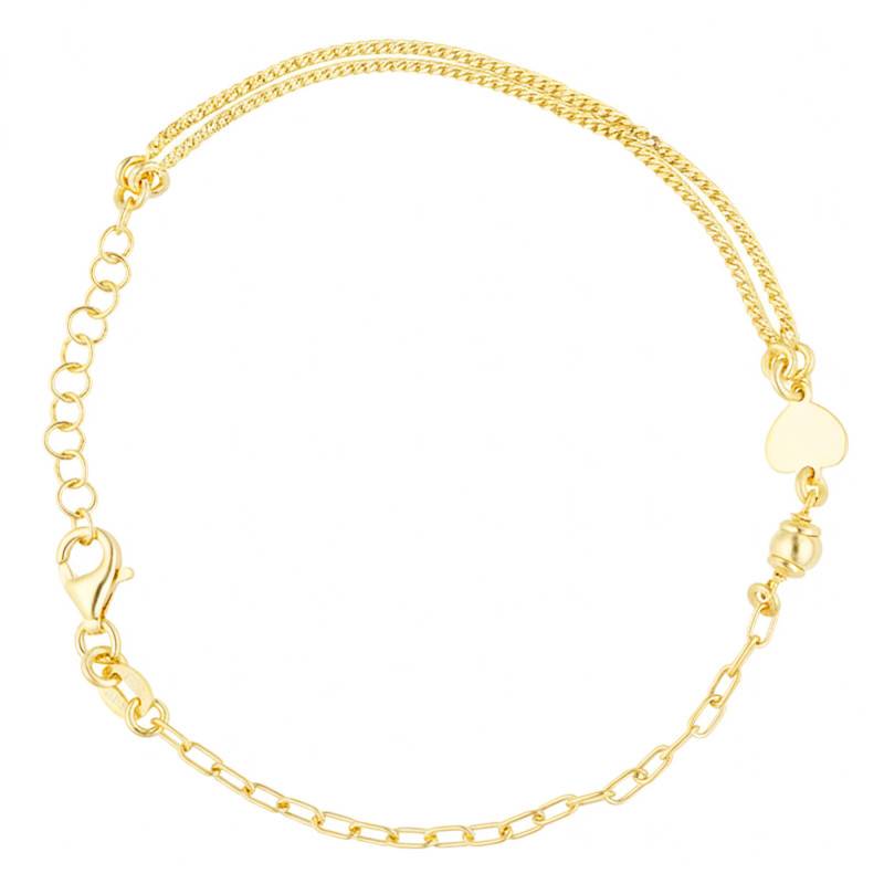 Ce Bracelet Cœur Double Chaîne en Argent 925 Plaqué Or se pare d'une délicatesse sans égale. Sa longueur, ajustable entre 17,00 cm et 20,00 cm, épouse le poignet avec tendresse. La matière, en Argent massif 925/1000, revêtue d'un plaqué Or de 3 microns, lui confère une allure résolument lumineuse, sublimée par une finition polie et brillante. D'une épaisseur de 0,50 mm et d'un poids total de 2,40 g, ce bijou est une ode à la légèreté. Son fermoir mousqueton assure un ajustement sûr et gracieux.