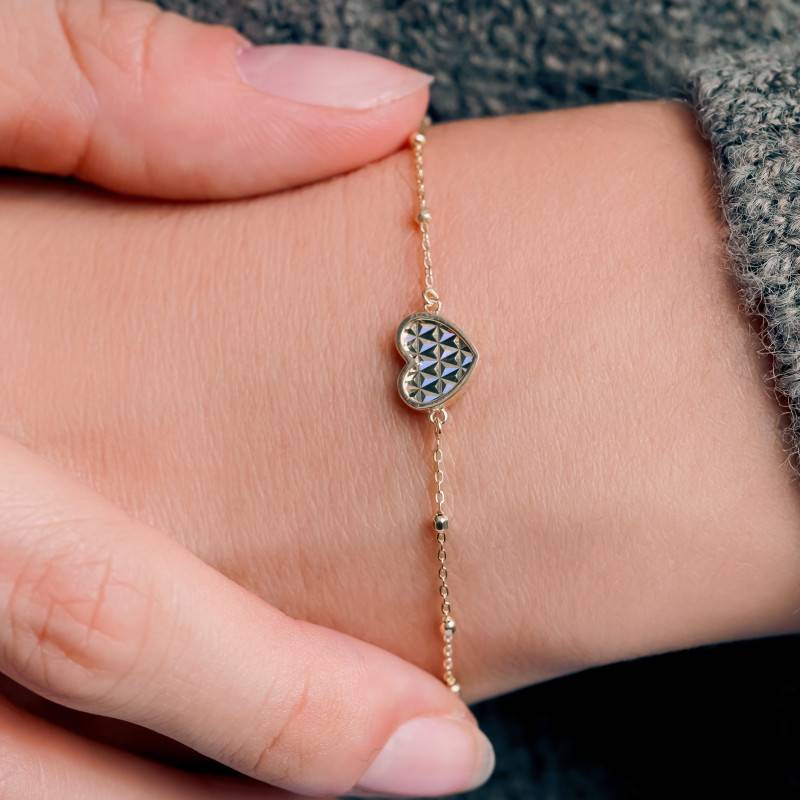 Laissez-vous charmer par ce Bracelet Coeur Scintillant en Or Jaune 375, délicatement façonné pour sublimer la beauté et l'élégance. Un coeur empreint de finition polie et brillante repose gracieusement sur une chaîne d'une longueur ajustable de 18 cm à 19 cm, permettant à chaque femme d'exprimer sa singularité. Confectionné en or jaune 375/1000 (9K), ce bracelet offre un éclat éternel, rehaussé par un fermoir anneau à ressort pour une sécurité optimale. Avec une largeur de 7 mm, une hauteur de 9 mm, et pesant 1,10 g, il se présente comme un compagnon léger mais éloquent, symbole de l'amour et des promesses.