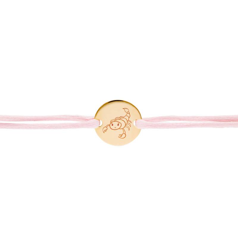 Découvrez le bracelet cordon médaille Zodiaque Scorpion Enfantin, une harmonie parfaite de légèreté et de style. Sa médaille est confectionnée avec soin en laiton revêtu d'un plaqué or 750/1000 (18K) de 3 microns, offrant une finition polie et brillante. Son épaisseur de 0,70 mm et son diamètre de 15,00 mm magnifient le médaillon qui arbore le signe astrologique du scorpion délicatement dessiné. Le cordon est disponible en six teintes au choix : rose clair, bleu ciel, bleu foncé, noir, orange et rouge, pour un ajustement subtil à toutes vos envies. Le fermoir coulissant permet une longueur ajustable pour épouser le poignet de chaque enfant. De plus, la médaille peut être gravée, offrant une personnalisation touchante à ce bijou de 1,50 gramme.