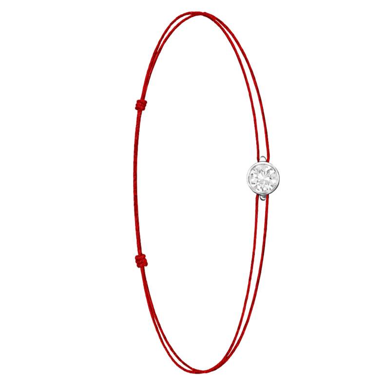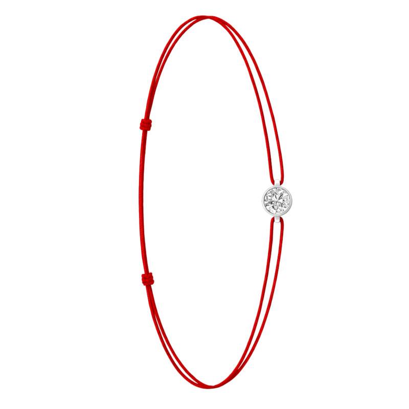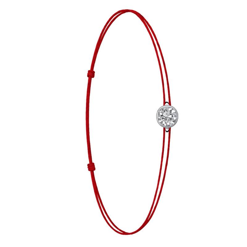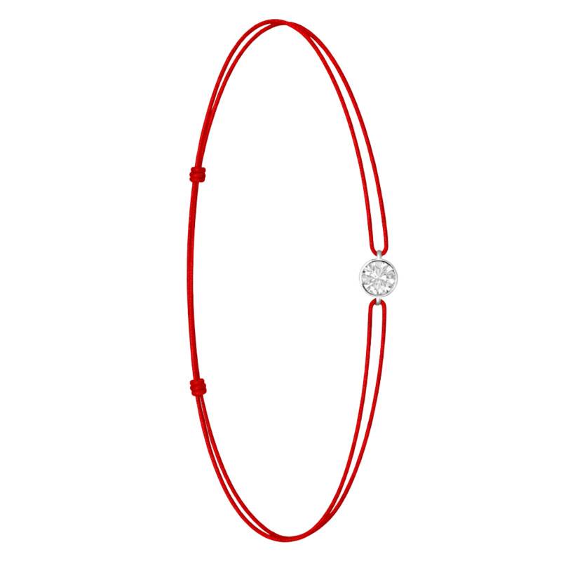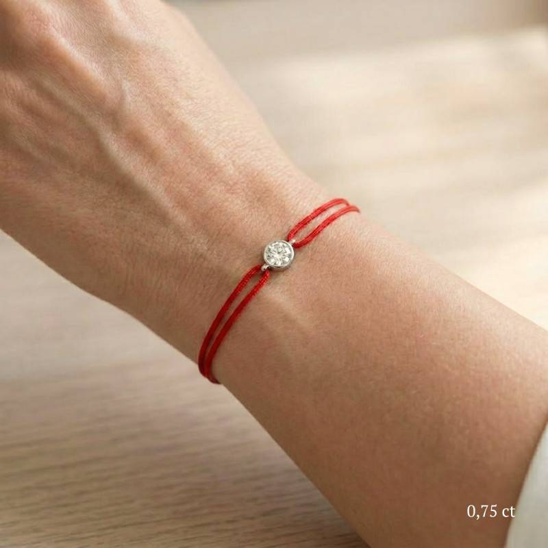 Le Bracelet Cordon Rouge en Or Blanc 750 se distingue par son design épuré et sa touche de couleur vive. Il est orné d'un diamant de synthèse cultivé en laboratoire, disponible de 0,15 ct à 0,75 ct, serti clos dans de l'or blanc 750. De couleur D et de pureté VVS2, le diamant offre une excellente brillance et une grande pureté. Les bracelets de 0,15 ct à 0,25 carat mesurent 0,80 mm d'épaisseur et sont montés sur un cordon en nylon, à la fois fin et résistant. Les modèles de 0,30 ct à 0,75 carat présentent une épaisseur de 1 mm et sont dotés d'un cordon en satin, pour un rendu plus doux et élégant. Ajustable, ce bracelet s'adapte facilement à toutes les tailles de poignet. Enfin, Le poids du bracelet varie selon le carat choisi, allant de 0,25 g à 0,65 g.