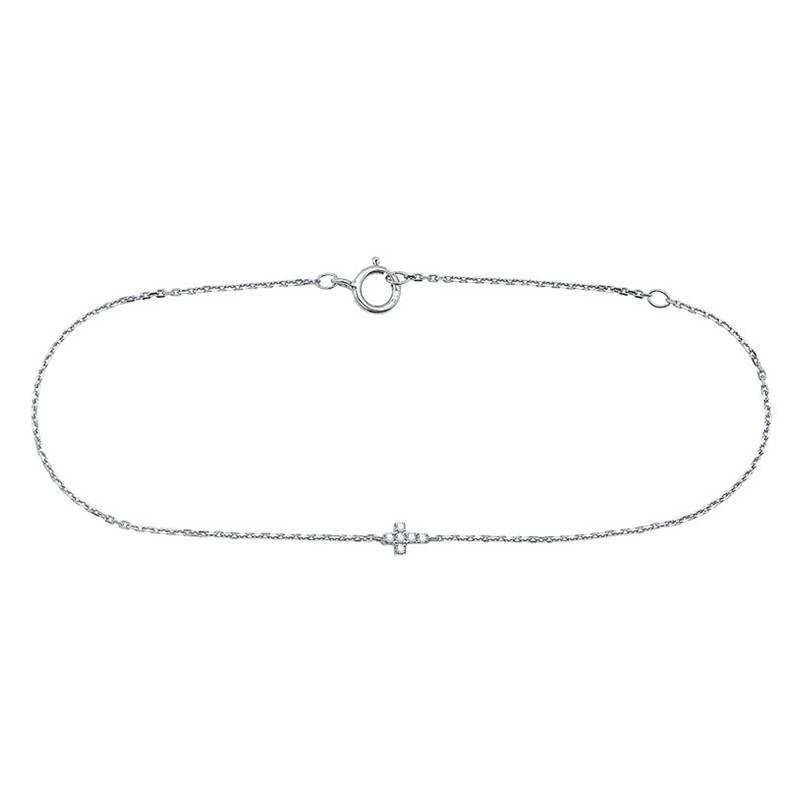 Succombez à ce bracelet Croix de la marque Emanessence. Ce bracelet en or blanc est orné de 6 diamants ayant un poids de 0.04 carat. Le diamant représente l'amour éternel mais surtout l'engagement. La largeur du motif croix est de 7 mm pour une hauteur de 4 mm. L'épaisseur quant à elle, est de 1.50 mm.