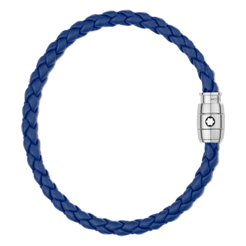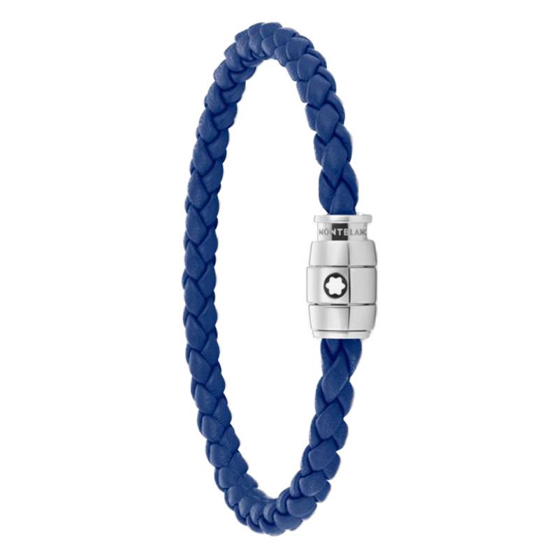 Succombez au charme irrésistible de ce superbe bracelet conçu en cuir de bovin bleu. Son style classique possède un aspect unique et ses tresses signent son originalité. Il est sublimé par un fermoir magnétique à trois anneaux en acier inoxydable poli, dont un est rehaussé de l'emblème Montblanc. Facile à porter, il pèse 12 grammes et mesure 18,5 cm à 19,5 cm de longueur. C'est un bijou à la fois élégant et moderne qui apportera une touche tendance à votre look.