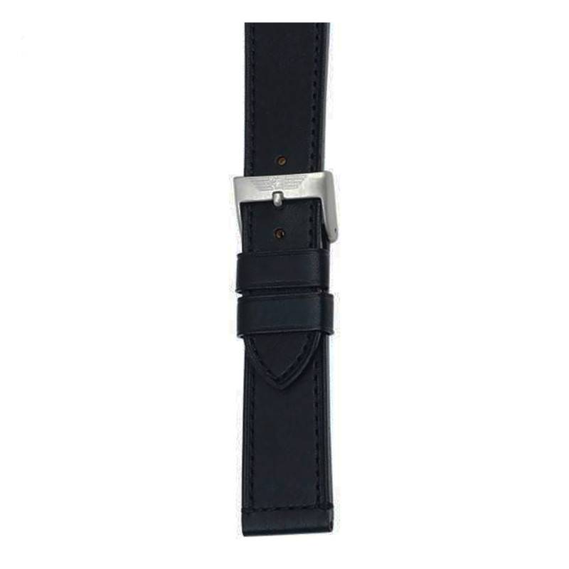 Le bracelet est en cuir véritable de couleur noir avec une surpiqure noire sublimera votre montre Infantry Chrono Large avec élégance et distinction. La fermeture s'opère via une boucle ardillon classique de couleur argentée signée de l'emblème de la maison horlogère.