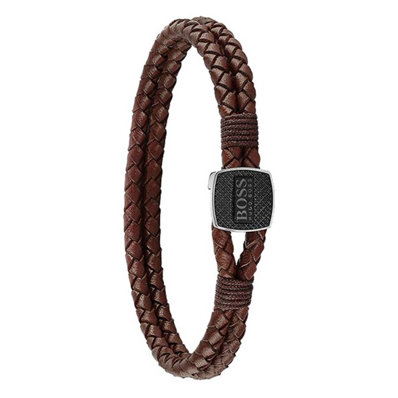 Voici un ravissant bracelet ! C'est un bijou empli de caractère qui saura compléter n'importe lequel de vos looks! Il est composé d'un cuir tressé d'une très profonde couleur marron. Le bijou est orné d'une superbe médaille en acier noir. Raffiné, moderne et rock, ce bracelet est la touche finale qu'il manquait à vos tenues masculines et élégantes. Il possède une longueur de 19,00 cm, et un poids de 6,71 grammes. Vous pourrez le porter sans inquiétude grâce à un fermoir bouton où trône le mot "Boss", clin d'oeil au nom de la marque et à votre grand charisme.