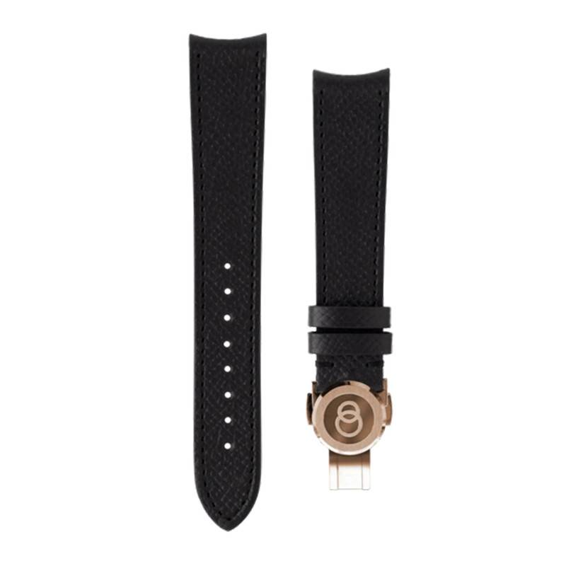 Le bracelet de montre de Beaubleu en noir est un exemple parfait de style et de fonctionnalité réunis. Sa fabrication en cuir de veau souligne une texture grainée qui apporte une densité visuelle et une richesse au toucher. Chaque détail est minutieusement travaillé, des surpiqûres soignées qui accentuent son esthétique à sa boucle déployante qui garantit une sécurité et un confort lors de son utilisation. Sa largeur de 20 mm à l'entrecorne se rétrécit à 16 mm vers la boucle, offrant ainsi une transition harmonieuse et un équilibre parfait sur le poignet. Ce bracelet est adaptable à l'ensemble des modèles Beaubleu, exception faite de la collection Ecce Figura, et propose une personnalisation de boucle avec des choix en couleur acier ou couleur or rose, permettant une coordination raffinée avec diverses montres et happenings stylistiques.
