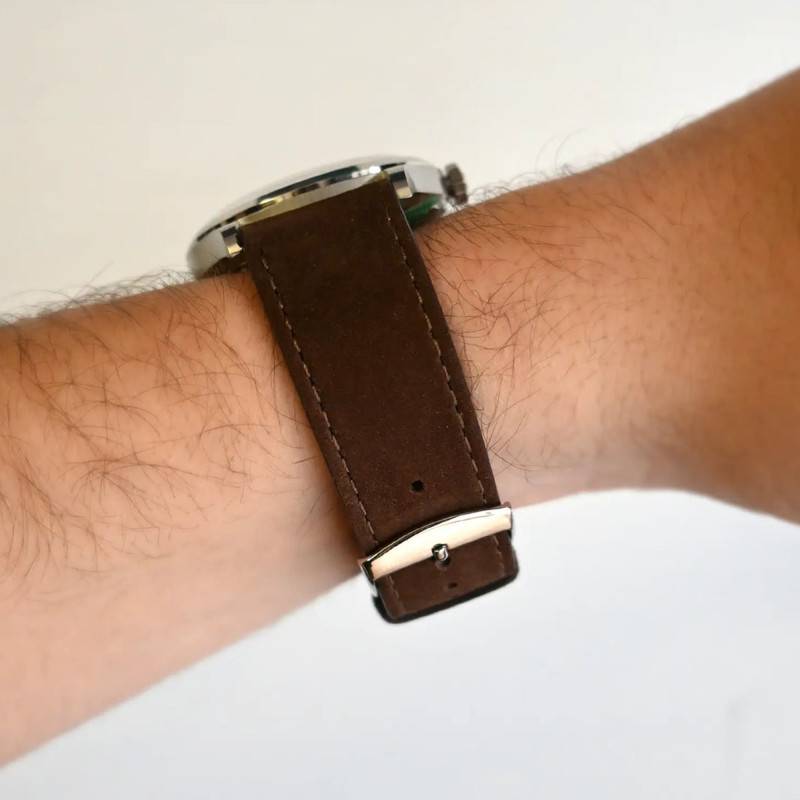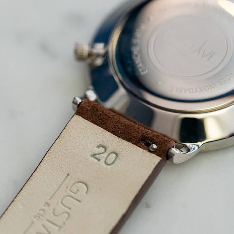 Le bracelet de montre proposé par Gustave & Cie est un véritable élément de style qui saura enrichir l'esthétique de votre garde-temps. Conçu en cuir de chèvre de qualité supérieure, il présente une finition nubuck lisse qui procure une texture douce et raffinée au toucher. Cette couleur marron chocolat ajoute une touche de sophistication intemporelle qui s'accorde harmonieusement avec tous les styles, agrémentée d'une surpiqûre. Ce bracelet est équipé d'une boucle ardillon, simple et élégante, assurant une fermeture sécurisée. Avec une largeur d'entrecorne de 20 mm, ce bracelet s'adapte à une grande diversité de boîtiers de montre, permettant ainsi une personnalisation facile et élégante de votre accessoire horloger. De plus, la taille 110/90 mm offre un ajustement confortable pour une grande variété de tailles de poignets, en s'adaptant aussi bien aux poignets masculins qu'aux poignets féminins. Ce bracelet est accompagné d'une garantie de 2 ans en cas de vice de fabrication, reflétant la confiance en la qualité de son confectionneur.