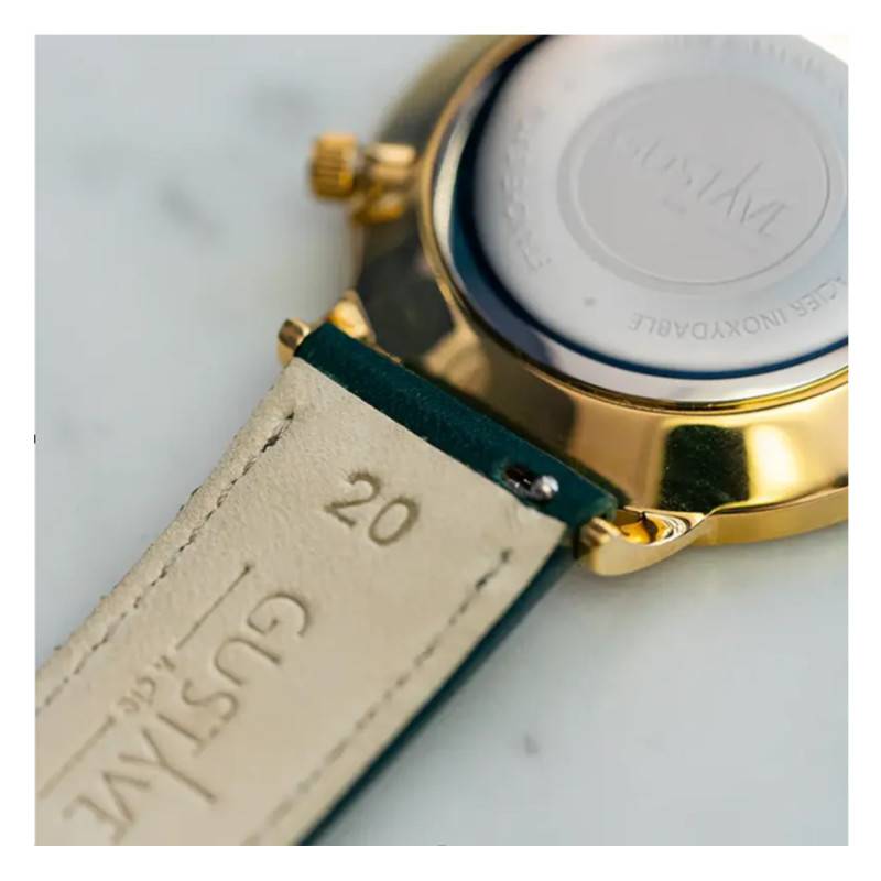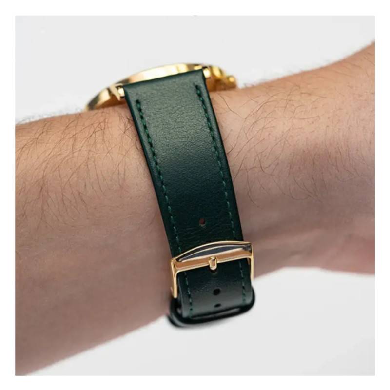 Le bracelet de cette montre est un modèle d'élégance et de robustesse. Réalisé en cuir de vachette, il offre une texture lisse et résistante, idéale pour un usage quotidien. Sa couleur vert émeraude lui confère une personnalité unique, ajoutant une note de fraîcheur et de sophistication à votre poignet. Les surpiqures discrètes accentuent le raffinement de la pièce, témoignant d'une grande attention aux détails. Le fermoir à boucle ardillon assure une fermeture sécurisée tout en ajoutant une touche de classicisme à l'ensemble. Avec une entrecorne de 20 mm, il est conçu pour s'adapter parfaitement aux boîtiers de taille standard. Sa taille de 110/90 mm permet une flexibilité d'ajustement, convenant aussi bien aux poignets masculins qu'à ceux des femmes.