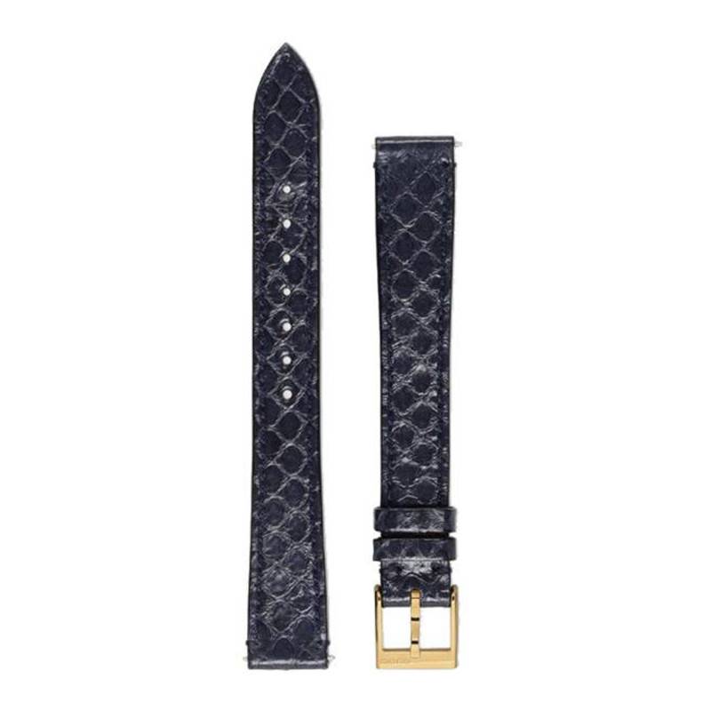 D'une entrecorne de 14mm, ce bracelet est réalisé en cuir de serpent Ayers. De couleur bleue, il est muni d'une boucle ardillon de couleur dorée. Il est compatible avec les montres G-Frame de 21x34 mm.