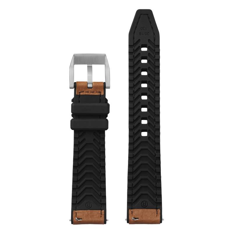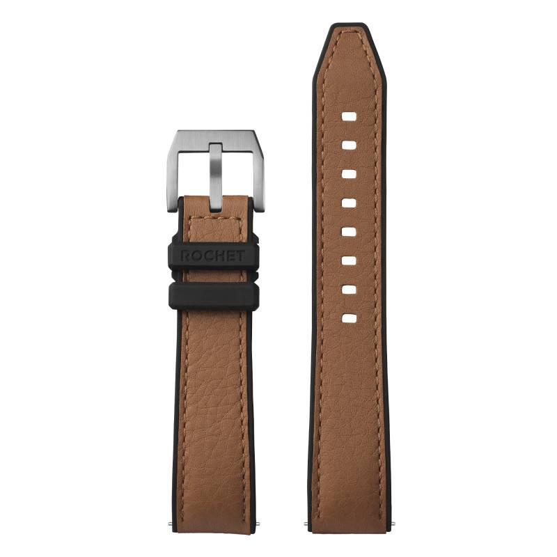 Le bracelet Hybrid Cordoba Cognac incarne un mariage exceptionnel entre tradition et modernité, conçu pour ceux qui ne veulent jamais sacrifier le style pour la performance. Conçu pour les amateurs de montres sophistiquées et pratiques, ce bracelet combine un cœur en caoutchouc NBR de couleur noire, multi-usage et fonctionnel, avec du cuir de taureau pleine fleur d'une teinte marron cognac. Ce modèle intègre astucieusement des sillons d'aération qui dissipent efficacement la chaleur et l'humidité, rendant le bracelet remarquablement respirant, idéal pour les activités en plein air. Les surpiqûres renforcées parlent d'un souci d'esthétisme, ajoutant des touches élégantes et subtiles qui attirent le regard.
