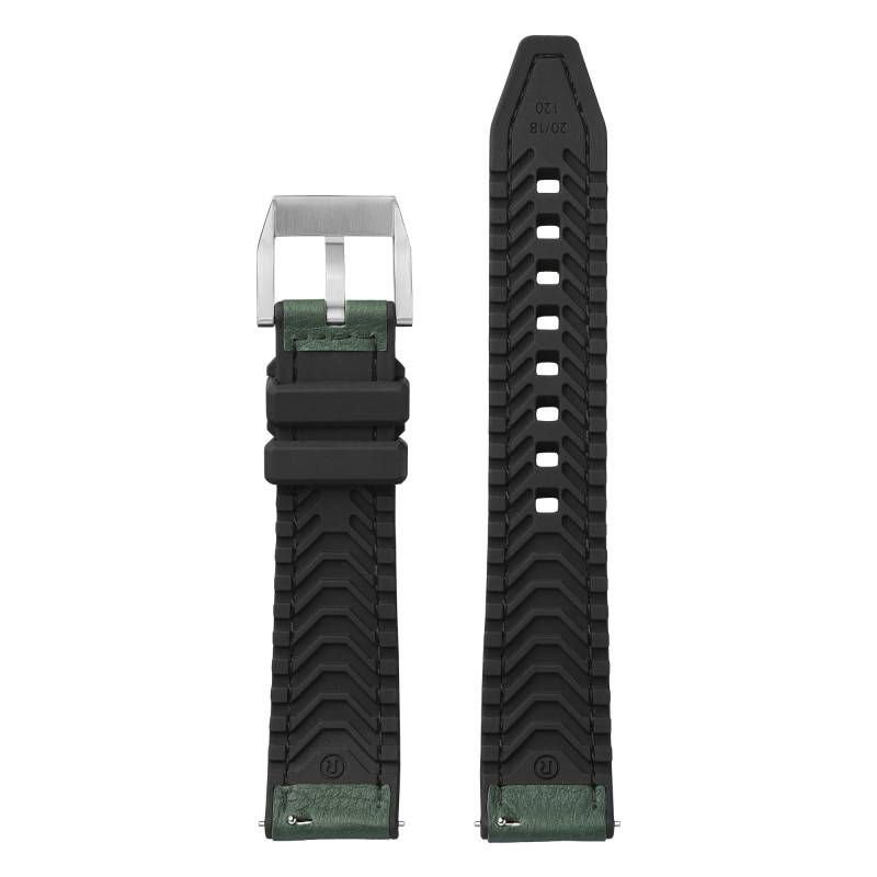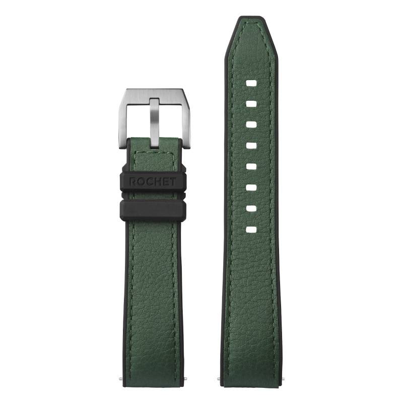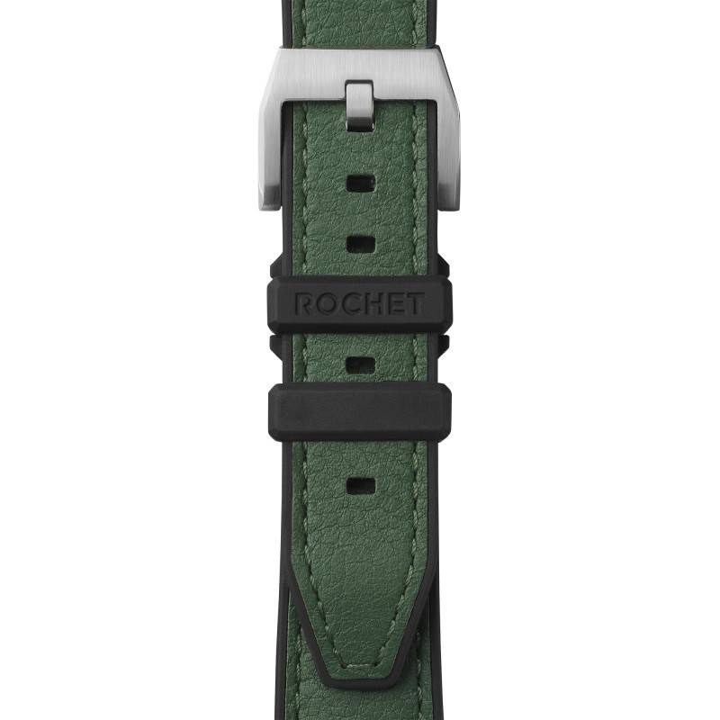 Le bracelet Rochet Cordoba est une véritable fusion de technicité et de raffinement, conçu pour ceux qui cherchent à allier performance et élégance. Doté d'un cœur en caoutchouc NBR, reconnu pour ses qualités de respirabilité grâce à ses sillons d'aération, ce bracelet évacue chaleur et humidité, garantissant ainsi un confort optimal par temps chaud ou lors d'activités physiques. À l'extérieur, il arbore une superbe finition en cuir de taureau pleine fleur, un matériau brut et noble qui confère au bracelet sa robustesse et son caractère authentique. Le vert empire, combiné au noir du caoutchouc, crée un contraste saisissant qui ne manquera pas de rehausser votre montre préférée.