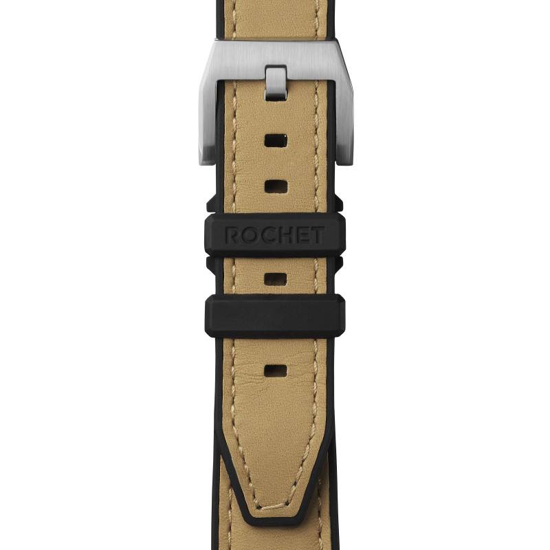 Optez pour le bracelet Hybrid Sahara de chez Rochet, un accessoire phare conjuguant esthétique et robustesse. Conçu pour se fondre dans les environnements les plus extrêmes, ce bracelet associe le caoutchouc NBR noir mat à un cuir de vachette couleur sable pleine fleur, permettant à votre montre de devenir un outil de choix pour l'exploration. Avec ses teintes naturelles qui s'étendent du beige doux aux accents noirs, le bracelet arbore des subtiles surpiqûres ajoutant une touche d'élégance.
