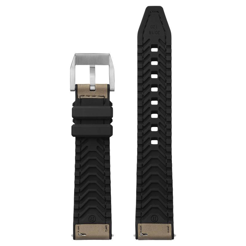 Le bracelet de montre Hybrid Sahara Taupe par Rochet incarne une fusion parfaite de style et de fonctionnalité. Conçu pour être aussi élégant qu'efficace, ce bracelet utilise une combinaison raffinée de caoutchouc et de cuir de vachette, offrant une texture unique qui allie souplesse et résistance. Sa couleur taupe subtilement enrichie de détails noirs apporte une touche de distinction à votre poignet. Ce bracelet est également pourvu de surpiqûres, ajoutant une finition élégante et soignée.