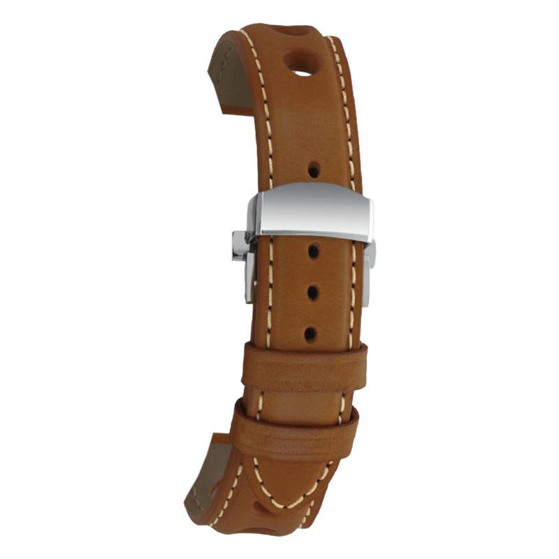 Ce merveilleux bracelet de montre à la fois sophistiqué et élégant vous permettra de rehausser le style de votre garde-temps en vous conférant une allure chic en toute occasion. Proposé par la marque emblématique Rochet, il est issu de la collection Le Mans et est conçu en cuir de vachette à tannage végétale, assurant sa grande durabilité et qualité. Vous pourrez l'accorder avec toutes vos tenues, il sera l'addition raffinée et moderne qui finalisera votre look de tous les jours. Ce bracelet de montre se pare d'une belle couleur cognac et présente des surpiqûres beiges sur ses bords avec des coutures écrues bleues, blanches et rouges. Sa doublure nubuck et ses jolies perforations lui permettent de souligner avec douceur votre poignet en assurant un port confortable et agréable en toutes circonstances. Vous pourrez le manier aisément en le maintenant attaché tout au long de la journée à l'aide de sa boucle déployante double fabriquée en acier inoxydable. Disponible en deux tailles, ce bracelet affiche une longueur de 115/80 mm au niveau de ses brins long/court.