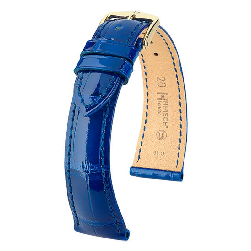 Ce bracelet montre Hirsch bleu roi fait en cuir d'alligator est doté de finitions brillantes et possède des surpiqûres ton-sur-ton. Cette couleur océan sublimera une montre élégante et raffinée.