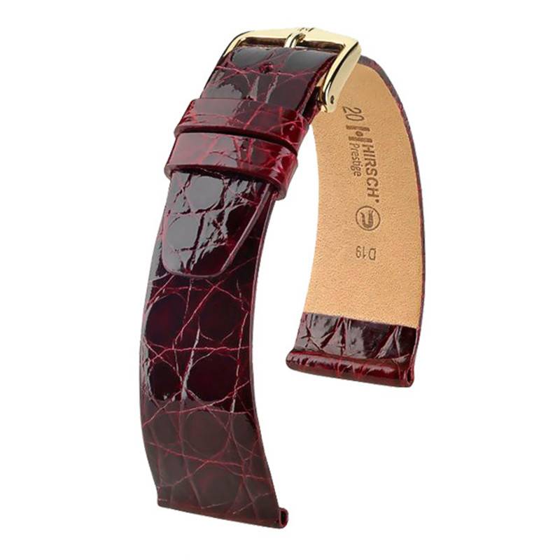 Aujourd'hui, c'est un bracelet de couleur rouge bordeaux en cuir de Crocodile véritable qui vous est présenté. D'origine d'Amérique du Sud, il est teinté dans la masse en cuve et poncé à la pierre d'Agathe à la main. Sa doublure Hirsch Silkglove Futterleder souple et résistante sera un vrai plaisir à porter au quotidien. Enfin, vous pourrez le régler à votre poignet masculin ou féminin grâce à sa boucle ardillon dorée.