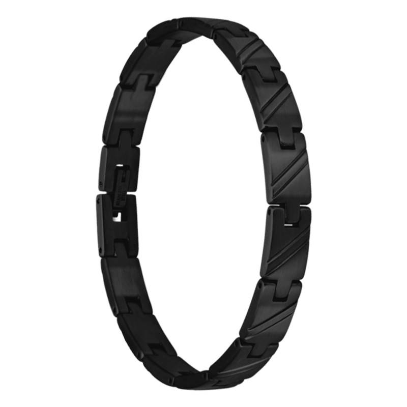 Captivant et sobre, laissez-vous tenter par ce bracelet de la collection Dear qui viendra souligner les courbes de votre poignet avec élégance. Réalisé à partir d'acier inoxydable, il est mis en avant par un traitement PVD noir qui lui rajoute un attrait séduisant. Ce bracelet est composé d'une série de maillons "Y" satinés, polis et rainurés. Équipé d'un fermoir clipable, il vous assure un port confortable. Il affiche une longueur de 21 cm pour 8 mm de largeur.