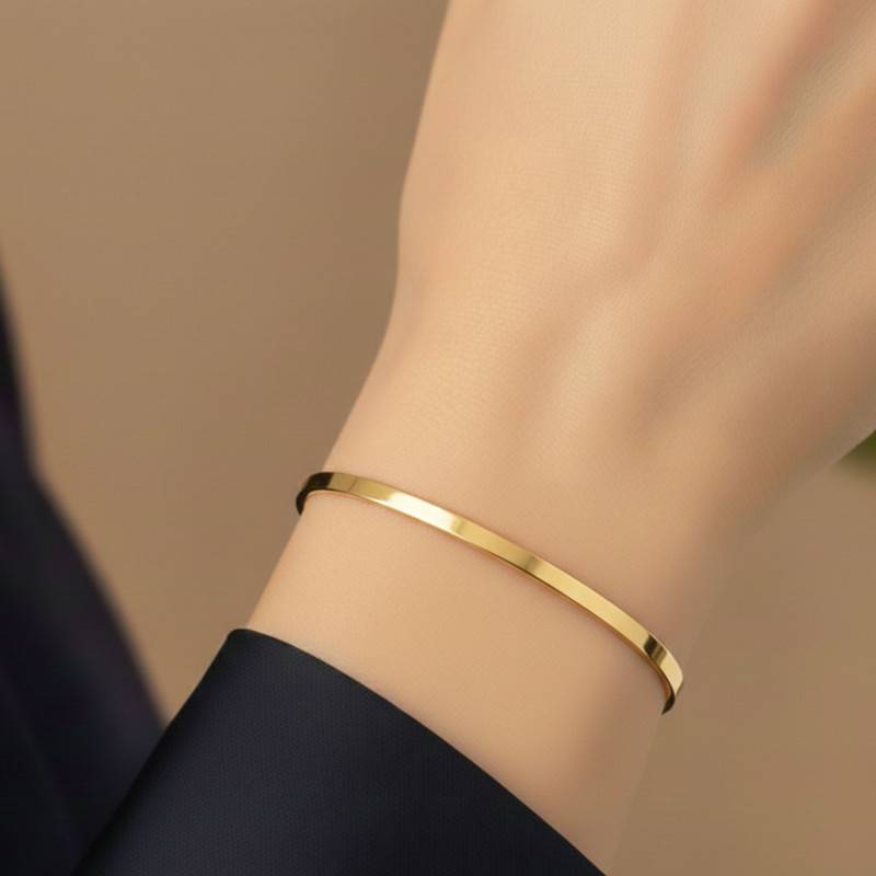 Laissez-vous séduire par ce Bracelet Demi Jonc Plaqué Or 4 mm, une ode à la féminité et à la grâce. Sa matière en laiton délicatement plaqué or illumine chaque poignet. Avec une largeur et une épaisseur de 4 mm, ce bijou respire la subtilité et la finesse. Le diamètre de 63 mm épouse avec élégance chaque courbe, créant une danse de lumière à chaque mouvement. Son poids léger de 9,5 g garantit un port agréable, jour après jour.