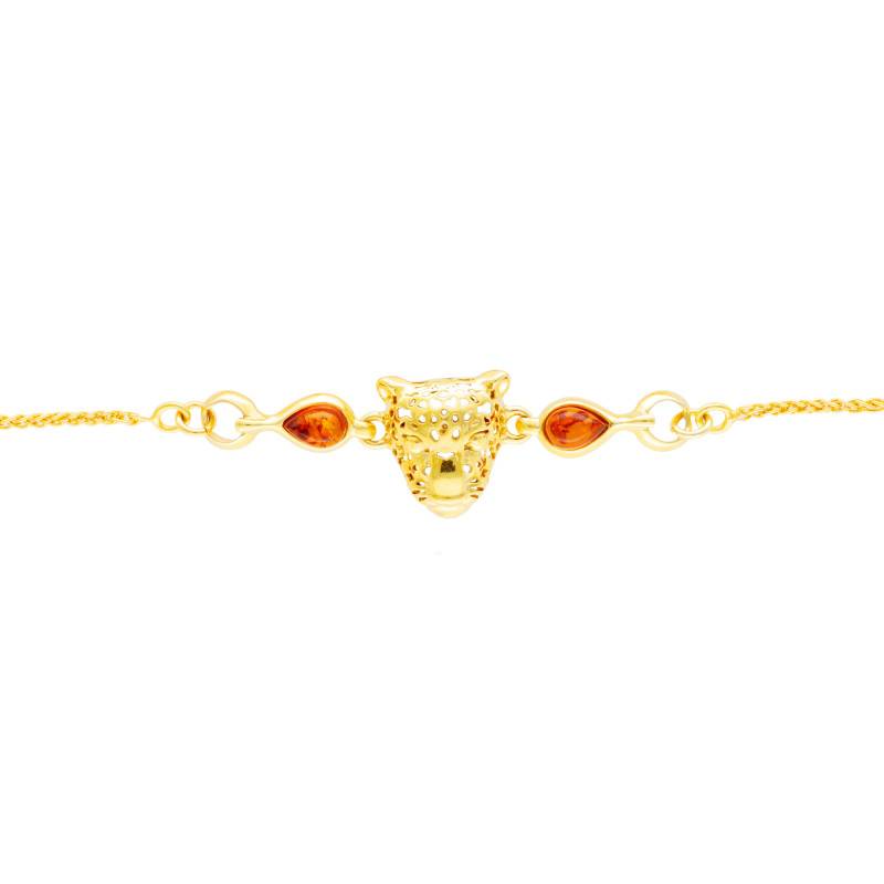 Le Bracelet Double Ambre en Argent 925 Doré & Tigre associe la chaleur de l'ambre à la force du motif tigre. Réalisé en argent massif 925/1000, finement doré et doté d'une finition polie et brillante, il illumine le poignet d'une lumière dorée. Le pendentif Ginkgo Tigre se distingue par sa largeur de 13 mm pour 14 mm d'hauteur et une épaisseur de 0,7 mm. Les deux pierres d'ambre, placées de part et d'autre du pendentif, ajoutent une touche de caractère et de raffinement. D'une longueur ajustable de maximum 28,00 cm, pour une épaisseur de 1,00 mm, ce bracelet se ferme aisément grâce à son fermoir coulissant.