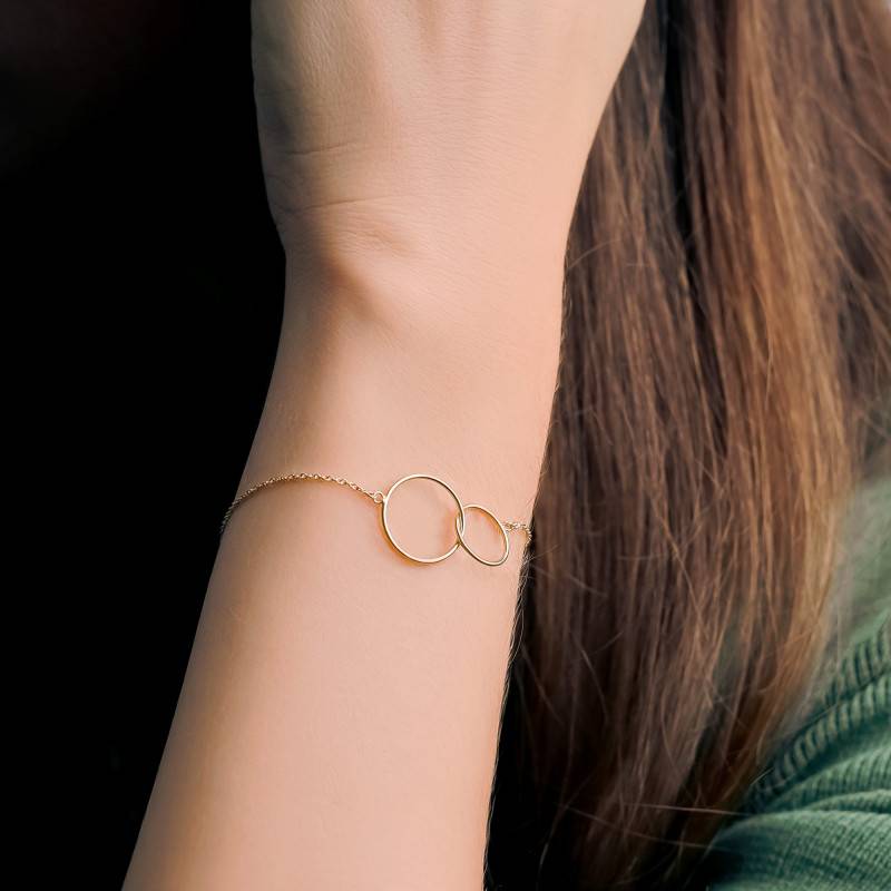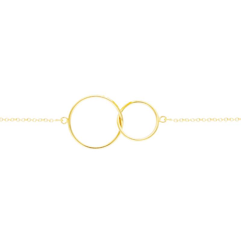 Ce Bracelet Double Anneaux Entrelacés incarne la symbiose parfaite entre charme intemporel et modernité singulière. Confectionné en Or Jaune 375, ses anneaux entrelacés symbolisent une union éternelle, une danse douce et harmonieuse sur votre peau. La finesse de la chaîne d'une longueur de 18 cm se marie avec la brillante finition polie, faisant de chaque reflet de lumière un éclat de rêve. Ce bijou est prêt à traverser le temps à vos côtés, fortifié par une garantie de 2 ans.