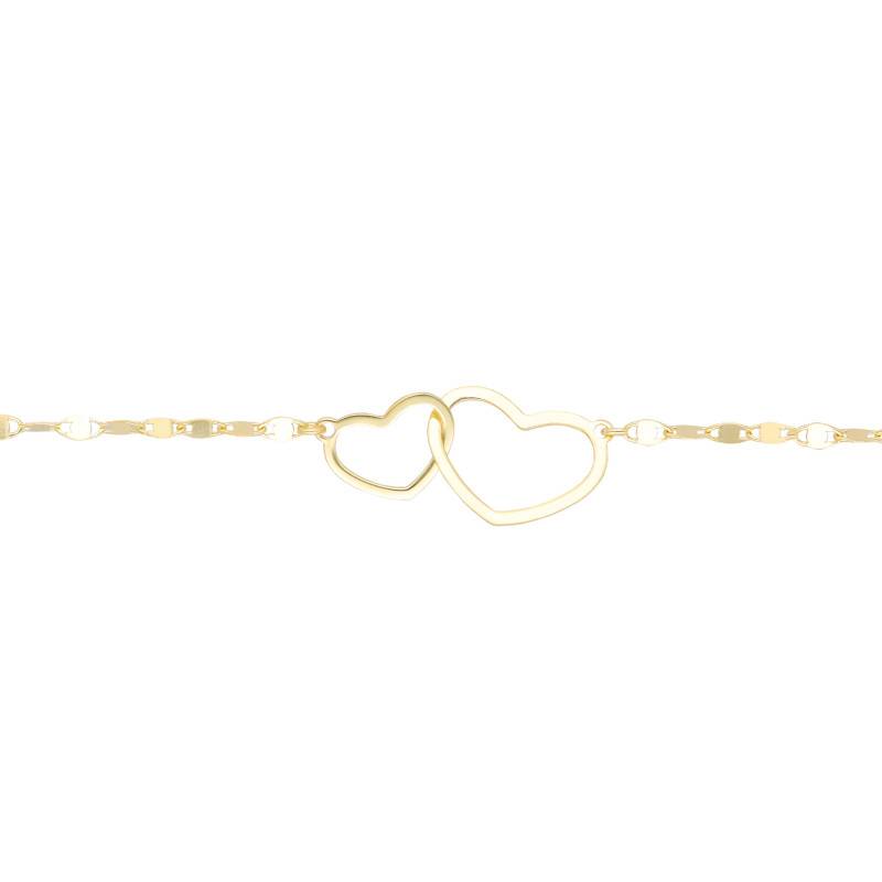 Le Bracelet Double Cœur en Argent 925 Plaqué Or illustre à merveille l'harmonie entre douceur et raffinement. Réalisé en argent massif 925/1000 et rehaussé d'un placage d'or 3 microns, il séduit par sa finition polie et brillante et son design délicat. D'une longueur ajustable de 16 à 19 cm et d'une épaisseur de 0,20 mm, ce bijou léger de 2,00 g épouse le poignet avec élégance. Ses deux cœurs entrelacés symbolisent l'union et la tendresse, tandis que le fermoir mousqueton garantit un maintien sûr et discret.