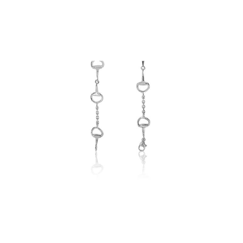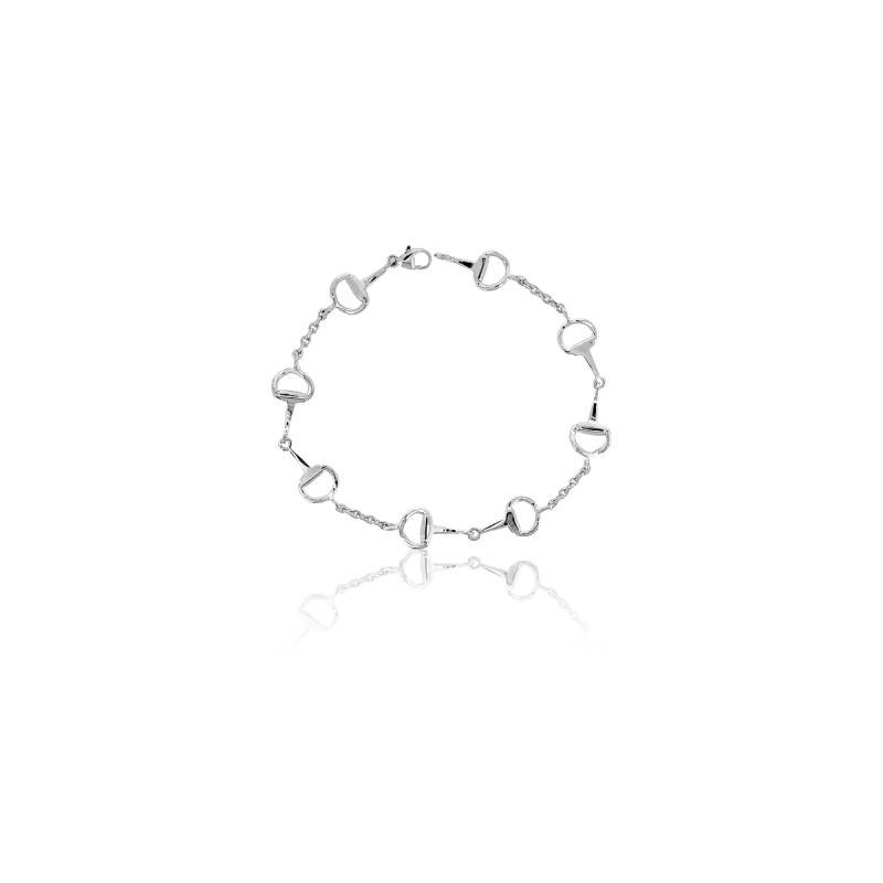 La maison Artemis vous présente ce bracelet conçu en argent massif 925/1000. Celui-ci se compose de 3 mors d'équitation reliés les uns aux autres par une fine chaîne forçat limée. Ce bracelet est passivé, c'est-à-dire que nous retrouvons un traitement de surface pour que le bijou soit insensible à l'oxydation et pour lui apporter un éclat à nul autre pareil.