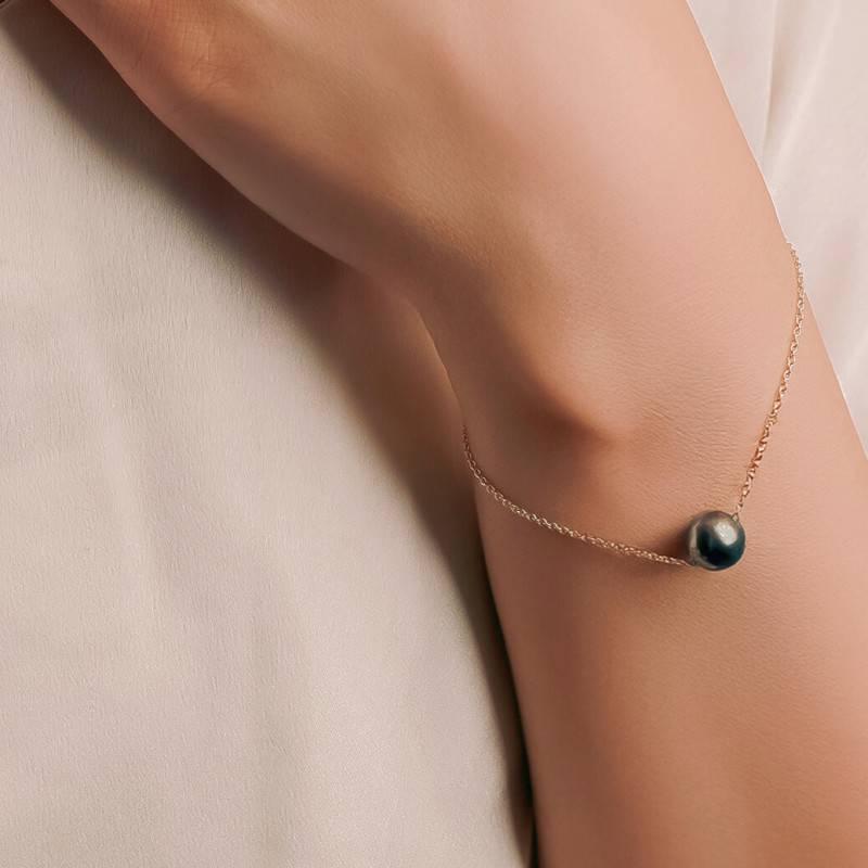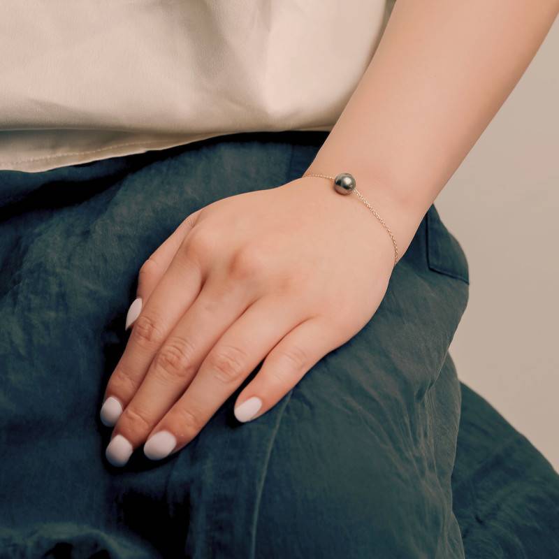 Ce bracelet, en Or jaune 750 et paré d'une magnifique Perle de Culture Tahiti, célèbre la rencontre entre le raffinement de l'or et la majesté de la mer. Avec sa maille forçat délicate, il danse subtilement au gré des mouvements, tandis que sa perle unique captive le regard par sa profondeur. D'une légèreté exquise, ce bijou de 0,85 g s'enroule avec grâce autour du poignet.