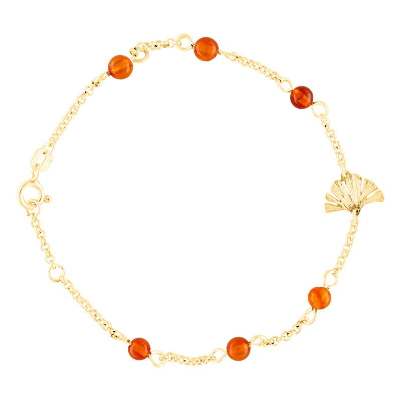 Le Bracelet Feuille Ginkgo et Ambre se distingue par ses 6 pierres d'ambre aux reflets chaleureux, serties sur un bracelet en Argent massif 925/1000 finement doré. Sa finition polie et brillante révèle toute la luminosité de ses teintes dorées. Léger et raffiné, il mesure 16 à 18 cm de longueur, pour une épaisseur de 0,70 mm et un poids de 1,90 g. Son fermoir à anneau à ressort assure un maintien sûr et discret.