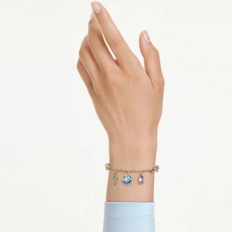 Laissez-vous envoûter par le Bracelet Gema Cristaux Suspendus Multicolores, une éclatante symphonie de couleurs et de lumière. Paré de cristaux de Swarovski aux teintes chatoyantes, ce bijou se déploie sur des métaux divers rehaussés d'un éclat doré. La finition polie et brillante magnifie chaque détail, tandis que le fermoir mousqueton assure une parfaite harmonie entre sécurité et esthétique. Avec une longueur ajustable entre 15,50 cm et 20,00 cm, ce bracelet épouse délicatement le poignet, tel un rayon de soleil capturé. Éveillez vos sens et offrez-vous une touche de féérie cristalline. Les motifs ont une taille d'environ 16 x 12mm.