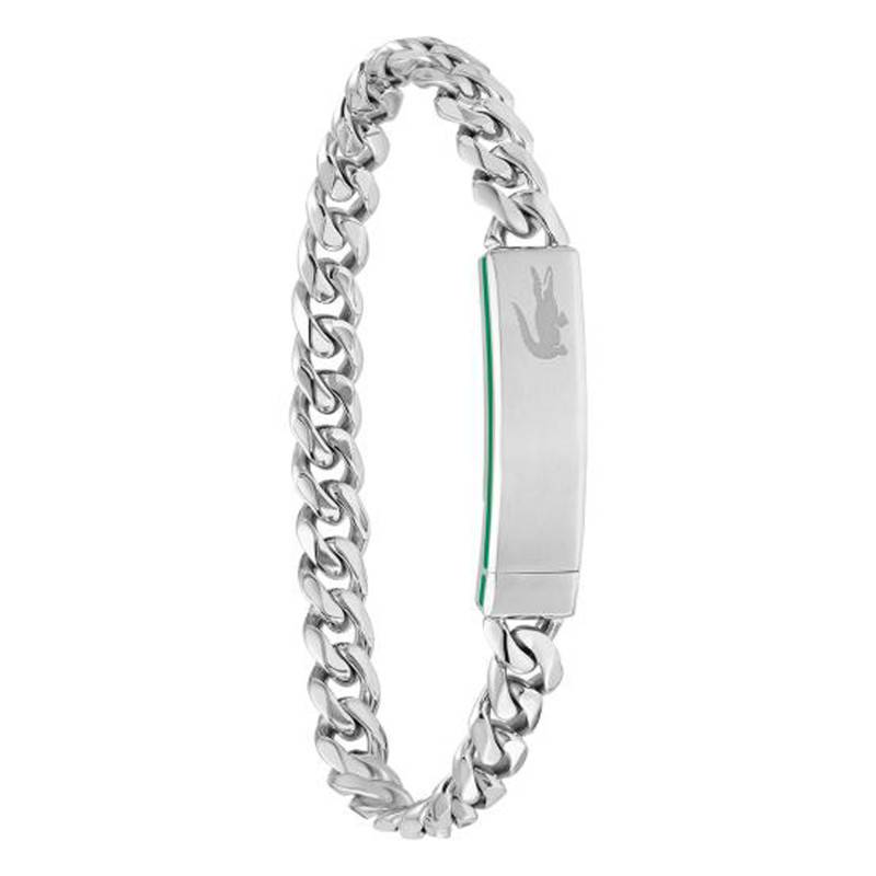 Cette gourmette de la collection Baseline au look classique a été soigneusement sélectionnée par notre équipe pour vous. Belle, radieuse et raffinée, elle est conçue en acier inoxydable et présente une couleur argentée mise en avant par un aspect brillant qui illuminera votre poignet masculin. Mesurant 19 cm de longueur, ce bracelet se compose d'une chaîne gourmette avec des maillons aplatis gracieusement entrelacés les uns aux autres. Cette gourmette est dotée d'un fermoir magnétique qui prend l'allure d'une plaque rectangulaire rehaussée par une fine ligne verte et signée du logo crocodile.