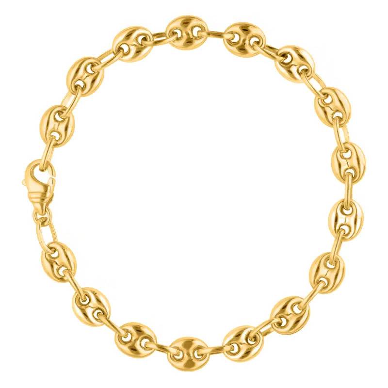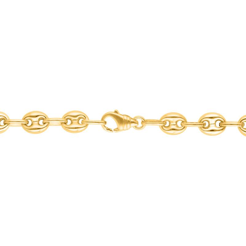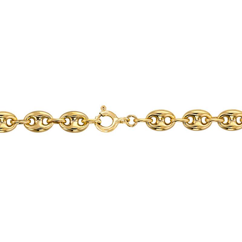 Bracelet maille grain de café en or jaune 750/1000 (18K) massif, d'une longueur de 16 cm. Le fermoir accompagnant ce bracelet est un anneau à ressort pour la largeur 2,30 mm et un mousqueton pour les autres largeurs.