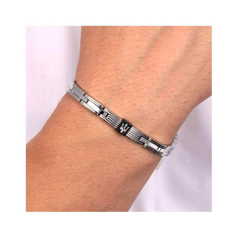 En tant que Revendeur exclusif, nous sommes fiers de vous présenter le Bracelet Iconic en Acier Bicolore, une pièce intemporelle qui incarne la quintessence de l'artisanat Maserati. Avec ses reflets gris et sa finition polie brillante, ce bracelet en acier capte la lumière à chaque mouvement. Conçu pour l'homme moderne, il offre une longueur ajustable de 18 à 22 cm et une largeur de 7 mm, pour un confort optimal. Son fermoir à boucle déployante assure sécurité et élégance, tandis que son design minimaliste célèbre la puissance discrète de la marque.