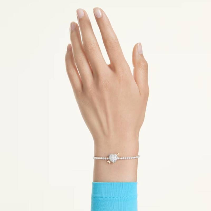 Laissez-vous séduire par la douceur rayonnante du Bracelet Idyllia en Plaqué Rhodium & Oxydes de Zirconium. Ce bijou, au design en forme de cœur, est un hommage à l'amour étincelant. Paré de délicats oxydes de zirconium, il capte et réfracte la lumière en une symphonie de lueurs. Sa composition en plaqué rhodium assure une brillance fascinante, tandis que son fermoir coulissant permet un ajustement parfait. La longueur ajustable de 24 cm et ses dimensions délicates, avec une largeur de 14 mm et une hauteur de 12 mm, font de lui un allié élégant pour orner vos poignets.
