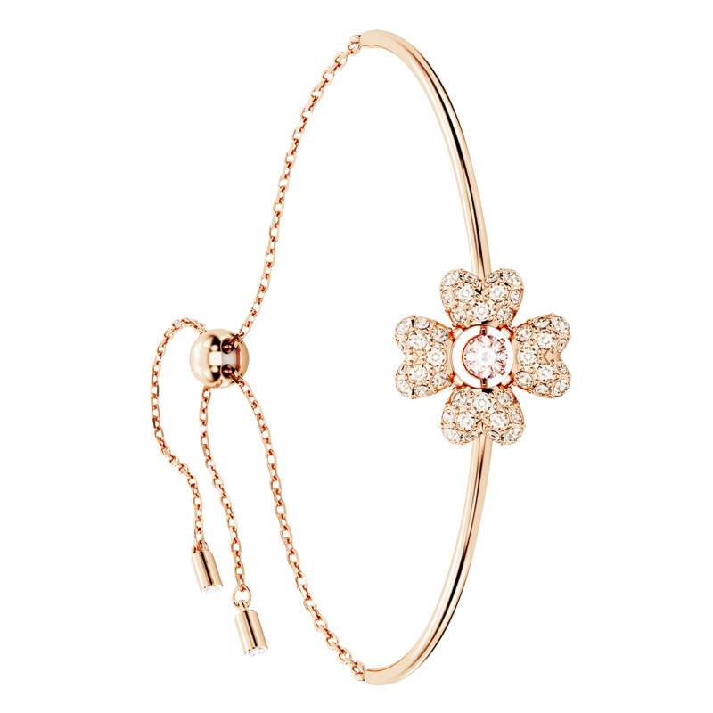 Ce magnifique bracelet trèfle vous accordera une note saisissante. Issue de la collection Idyllia, il dévoile beauté minimaliste. Il est entièrement fabriqué en métal rosé accompagné d'une finition polie qui illuminera votre main à merveille. Il est constitué d'une chaîne en maille forçat et un fil rond qui souligneront les courbes de votre poignet à merveille. En son centre, il accueille un trèfle à 4 feuilles orné de cristaux blancs sur chacune de ces dernières. Ensembles, elles mettent en évidence un ravissant cristal rose apportant éclat et élégance. Ce bracelet de 24 cm de longueur se manipulera au moyen d'une boule coulissante qui vous permettra de l'ajuster.