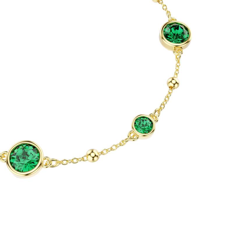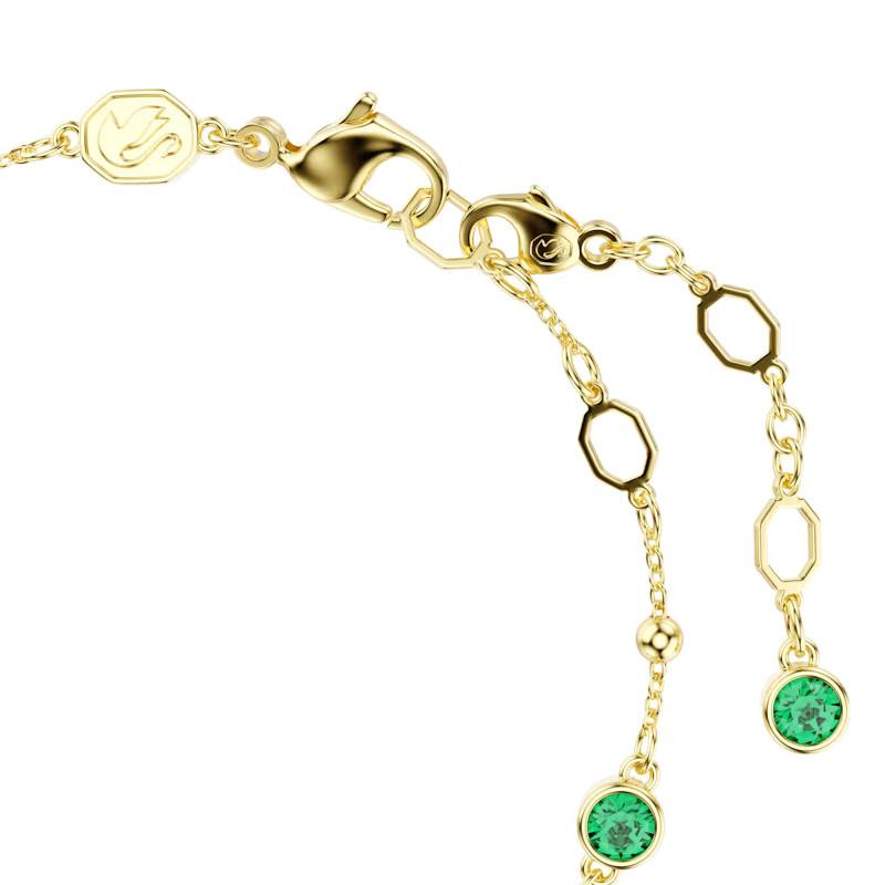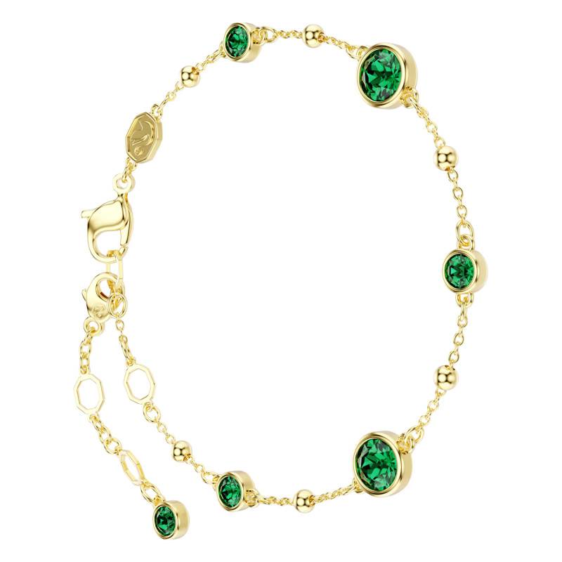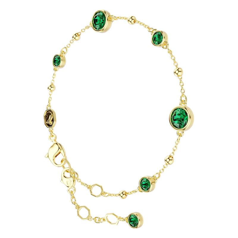 Optez pour le bracelet Imber, un lien de mystère et de raffinement. Forgé dans un métal doré, sa matière semble capturer la chaleur du soleil. Les cristaux de Swarovski aux reflets verts profonds sont nichés dans un sertissage clos qui en préserve l'éclat. Ce joyau ajustable, d'une longueur modulable entre 16,50 cm et 20,50 cm, embrasse délicatement votre poignet. Avec des motifs ronds atteignant 6,00 mm de largeur et de hauteur, il révèle une présence délicate. Le fermoir mousqueton garantit une sécurité sans faille.