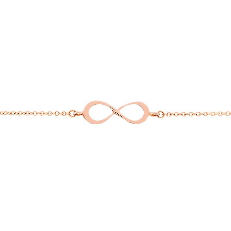 En ce qui concerne les dimensions de ce bracelet, elles sont les suivantes. Sa longueur est de 18,50 cm pour une épaisseur de chaine de 0,55 mm. Elle se ferme avec un mousqueton. Quant au signe infini, il mesure 6 x 13 mm. Le poids total de ce bijou est d'1,15 gramme.