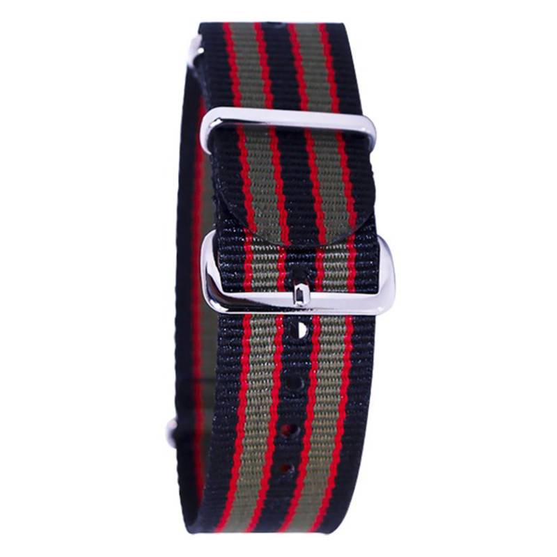 Inspiré du film Goldfinger (1964) ce bracelet nous rappelle M. Bond. C'est dans ce film qu'il a su démocratiser ce bracelet. De couleurs bleue, grise, rouge et kaki, ce bracelet vous donnera un style baroudeur. Sa boucle ardillon grise en acier inoxydable fermera à la perfection ce bracelet qui n'attend que vous !