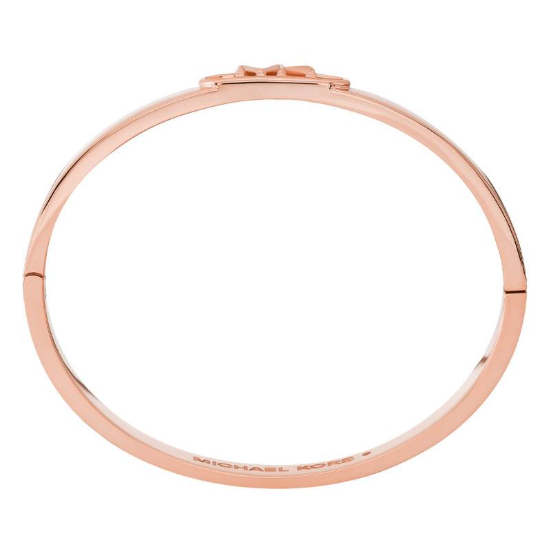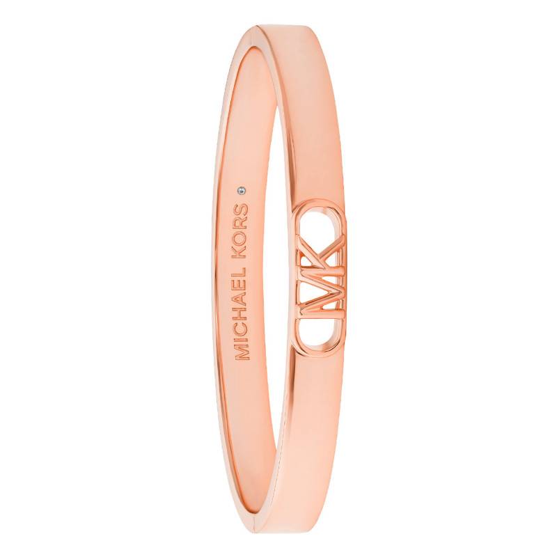 Ce magnifique bracelet jonc provient de la collection MK Statement Link. Soigneusement élaboré, il est réalisé en laiton plaqué or rose 585 (14K) avec une finition polie qui vous accordera une allure rayonnante. Ce bijou épousera soigneusement les lignes de votre poignet avec splendeur. Notez qu'il est sublimé par les initiales du nom de la marque "MK" en gage de signature. Le bracelet mesure 17,00 cm et a une largeur de 7,00 mm.