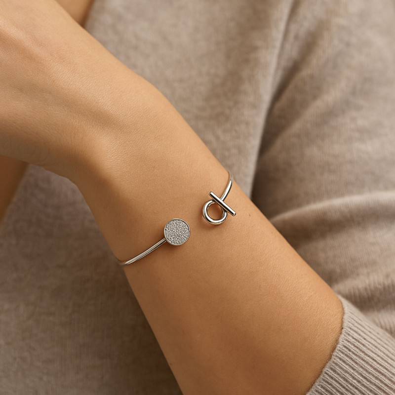 Le Bracelet Jonc Ouvert Cercles en Argent 925 & Zircons séduit par sa finesse et sa brillance. Réalisé en Argent massif 925/1000, il se distingue par sa finition polie et brillante. Les cercles ornés de zircons blancs en serti à grains reflètent la lumière avec délicatesse. Ce bijou féminin de 20 cm de longueur, 60 mm de diamètre et 0,20 mm d'épaisseur, pour un poids de 5,70 g, offre un port léger et confortable. Garantie 2 ans incluse.