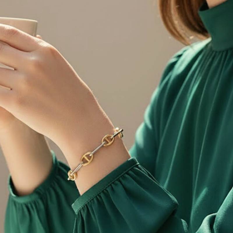Laissez-vous séduire par l'élégance intemporelle de ce Bracelet Maille Alternée en Argent Bicolore 925. Avec sa maille Cheval et Marine, chaque anneau de 16,00 mm à 23,00 mm semble raconter une histoire ancienne de beauté et de finesse. Le mariage délicat de l'Argent massif 925/1000 avec des touches dorées offre une symphonie visuelle. La longueur de 19,00 cm s'enroule gracieusement autour du poignet, attachée par un fermoir mousqueton sécurisé, et son poids de 15,90 g assure une présence affirmée mais délicate. Enfin ce bijou présente une finition polie et brillante