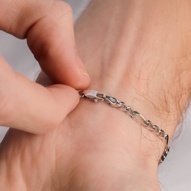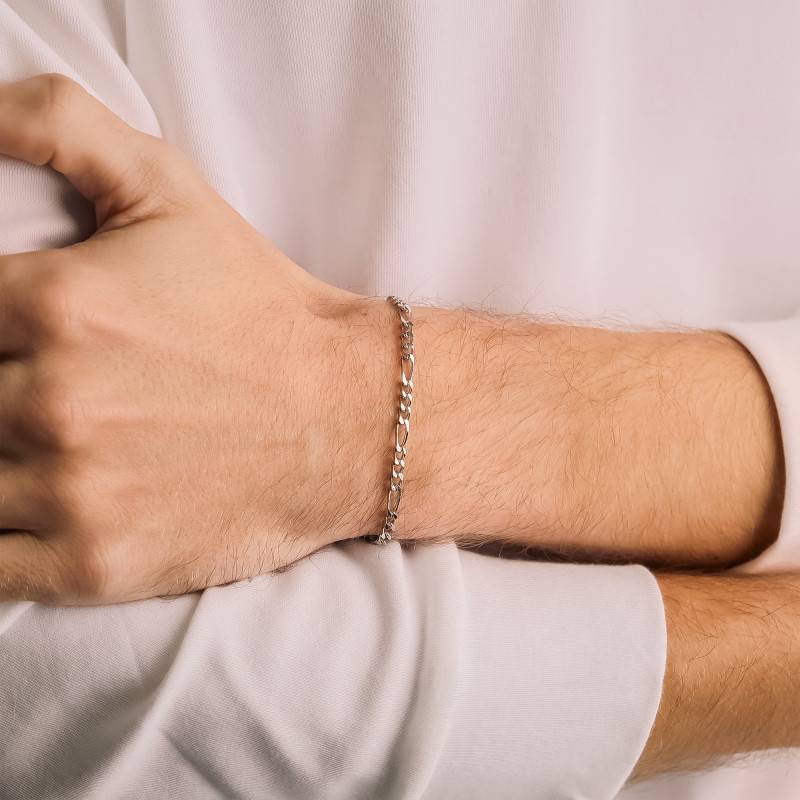 Ce bracelet chaîne est conçu en argent 925 avec une finition polie. Ce bijou se compose d'une maille figaro alternée d'une largeur de 4 mm et qui se termine par un fermoir mousqueton. Adapté à tous les styles, ce bracelet offre une diversité de style de jour comme de nuit. À noter qu'il est disponible en plusieurs longueurs avec des grammages différents qui sont les suivants :