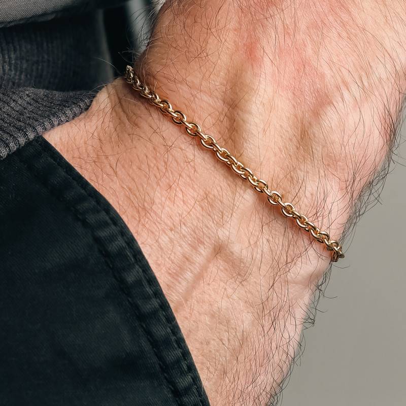 Bracelet composé d'une maille forçat ronde, en or jaune 750/1000 (18K), d'une longueur de 18 cm. Un bijou mixte, très classique, qui vous fera succomber. Tous les fermoirs sont des anneaux à ressort.