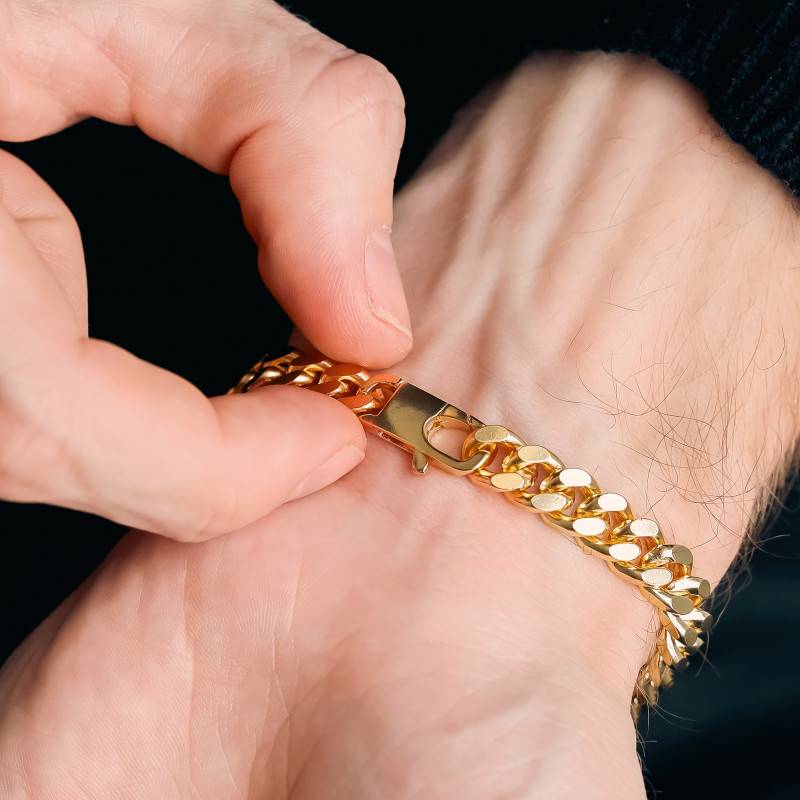 Ce bracelet, d'une largeur de 7,50 mm, se compose d'une chaîne en maille gourmette dorée réalisée en argent plaqué or 3 microns. D'une finition polie et d'un aspect merveilleusement luisant, il saura vous attribuer le charme que vous méritez au quotidien. Associable avec tous vos accessoires, ce bracelet dispose d'un poids d'argent variable. Il est également muni d'un fermoir mousqueton qui vous permettra une fixation plus pratique. Quant à ses dimensions, elles se présentent comme suit :