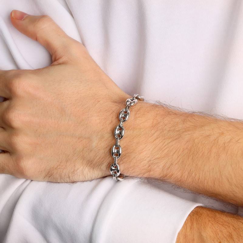 Ce magnifique bracelet se compose d'une chaîne en maille grain de café creuse faite en argent 925. Sa finition polie lui confère plus de brillance. Ce ravissant bracelet est proposé en longueur de 21,00 cm pour une largeur de 9,00 mm. Notez que son poids est de 13,80 grammes. Son fermoir de type mousqueton vous assure un maintien solide autour du poignet.