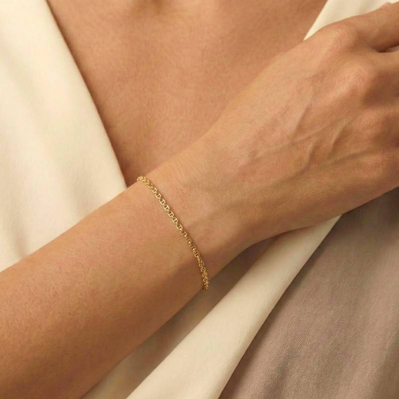 Ce Bracelet Maille Marine Plate en Or Jaune 375 séduit par son design intemporel et sa finesse remarquable. Chaque maillon, finement travaillé, reflète la lumière avec subtilité, apportant une touche d'éclat discrète au poignet. Disponible en trois longueurs de 18,00 cm, 20,00 cm et 21,00 cm, il épouse parfaitement le poignet et se ferme avec un fermoir anneau délicat. Sa largeur de 1,90 mm et son épaisseur de 0,20 mm révèlent une finesse d'exécution incomparable, pour un poids éthéré allant de 0,90 g à 1,15 g.