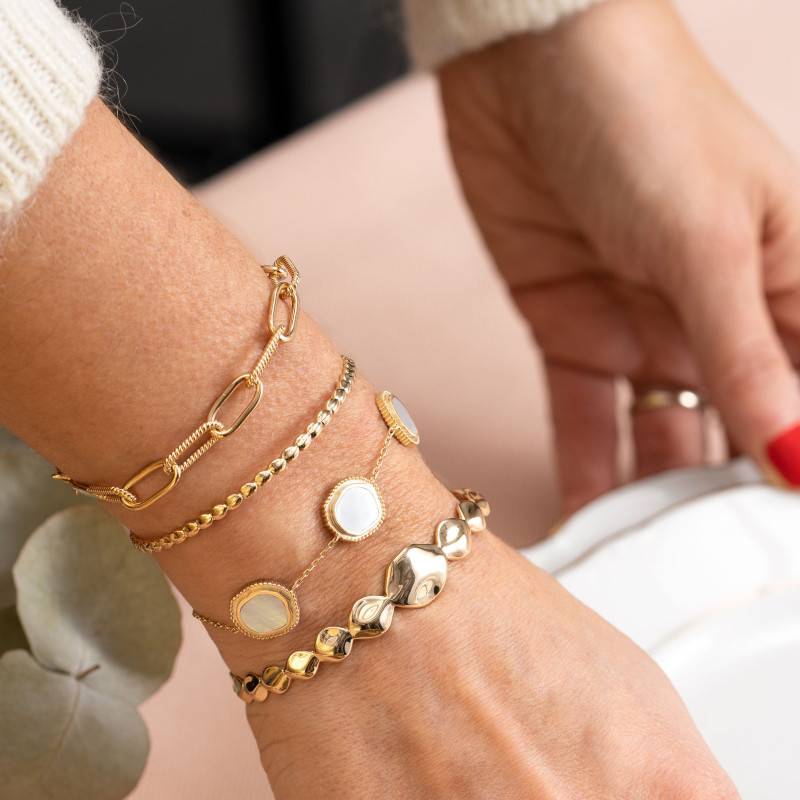 Nous vous dévoilons ce bracelet issu de la collection Marinette, Il est réalisé en plaqué or jaune 3 microns et mesure 18 cm de longueur. Ce plaquage permet au bijou de résister à la vie durant de longues années. Ce bracelet possède un design original et tendance. Ce bijou vous donnera à la fois la sensation d'avoir un bijou personnalisé et ajoutera une touche de détails à votre tenue.