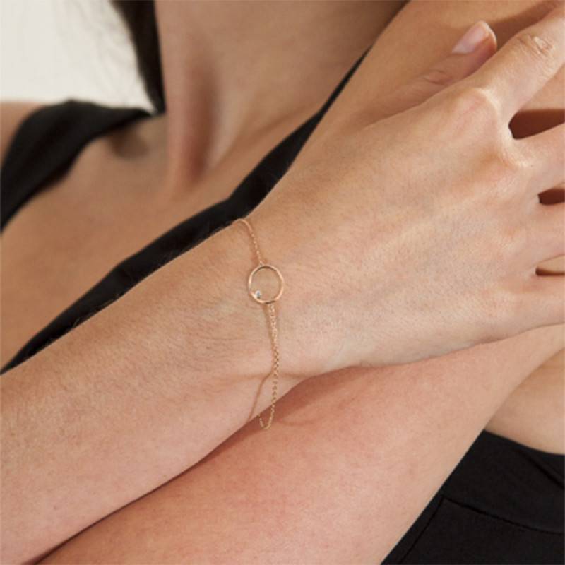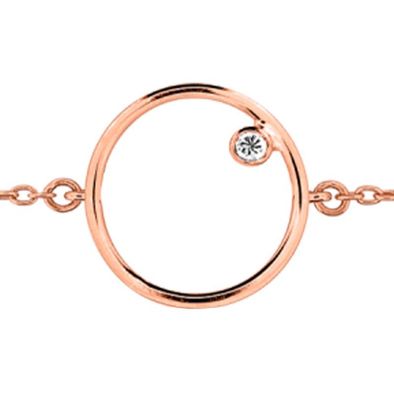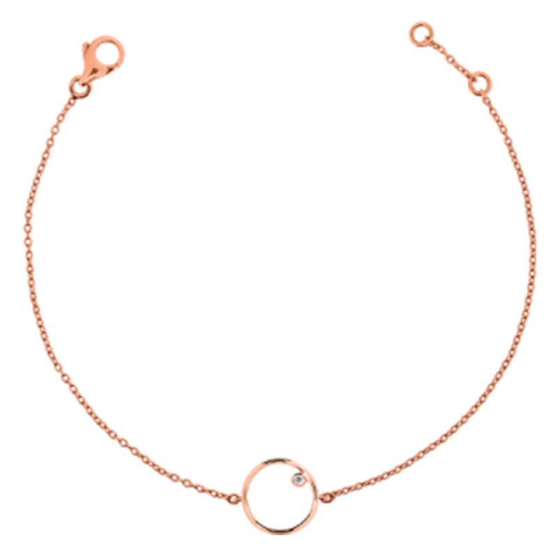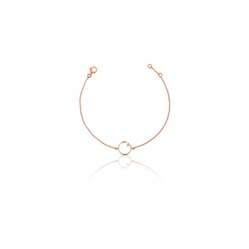 Elegant bracelet en or rose 750/1000 (18K) avec un motif central fil d'or en forme de cercle avec à l'interieur un diamant serti clos.