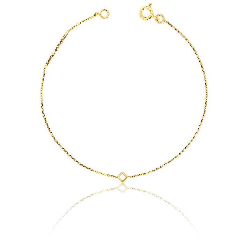 Incontournable, ce bracelet est issu de la collection "quadrature" de Pascal Morabito, soit un cube évidé en or jaune 750/1000 (18K), qui mesure 3x3x3mm.