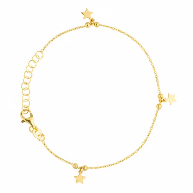 Le Bracelet Pampilles Étoiles en Argent 925 & Plaqué Or incarne la légèreté et la grâce. Réalisé en argent massif 925/1000, il est sublimé par un placage d'or 3 microns lui conférant une finition polie et brillante. Ses pampilles en forme d'étoiles captent la lumière à chaque mouvement, apportant une touche d'éclat au poignet. D'une longueur ajustable de 17 à 20 cm, avec une épaisseur de 0,70 mm et un poids de 2,00 g, ce bijou s'attache facilement grâce à son fermoir mousqueton discret et fiable. Garantie 2 ans, il conjugue confort, élégance et durabilité.