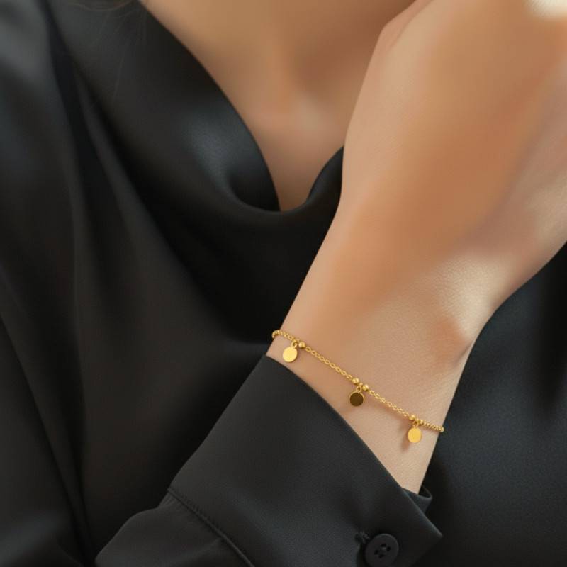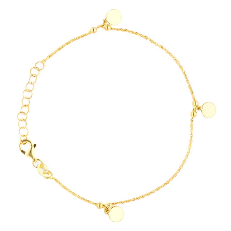 Le Bracelet Pampilles Rondes en Argent 925 Plaqué Or se distingue par son allure délicate et lumineuse. Réalisé en Argent massif 925/1000, il est rehaussé d'un plaquage or 3 microns qui lui confère un éclat chaleureux. Sa finition polie et brillante capte la lumière avec subtilité, tandis que sa longueur ajustable de 17 à 20 cm assure un port confortable et sur mesure. D'une épaisseur de 0,70 mm et d'un poids léger de 2 g, il allie finesse et élégance. Le fermoir mousqueton garantit un maintien sûr et discret.