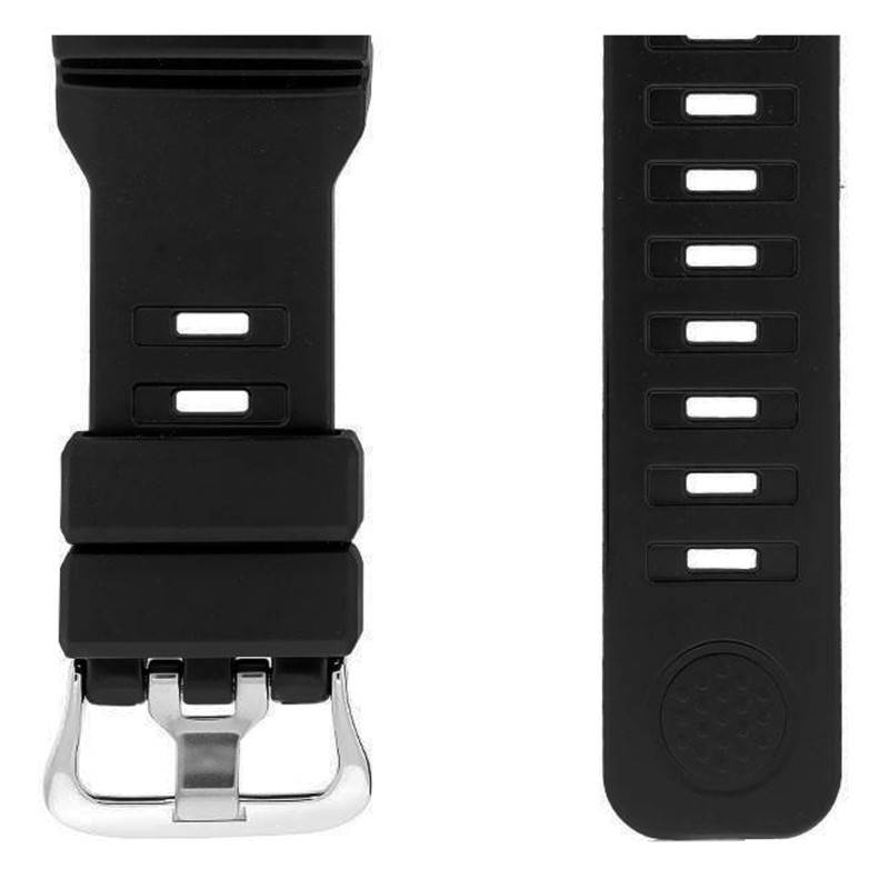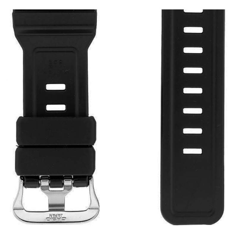 Ce bracelet en résine noir. Cette matière rend ce bracelet flexible et durable. Il est spécialement conçu pour les montres G-schock de Casio de la collection GN-1000RG. Il arbore des trous de forme rectangulaire et deux passants servant au bon maintien du bracelet autour de votre poignet. Une décoration se trouve sur la pointe du bracelet. L'étanchéité se trouve sur la partie supérieure du bracelet en lettres de couleur bordeaux. Il pourra vous suivre dans votre quotidien, que vous soyez aventurier ou non !